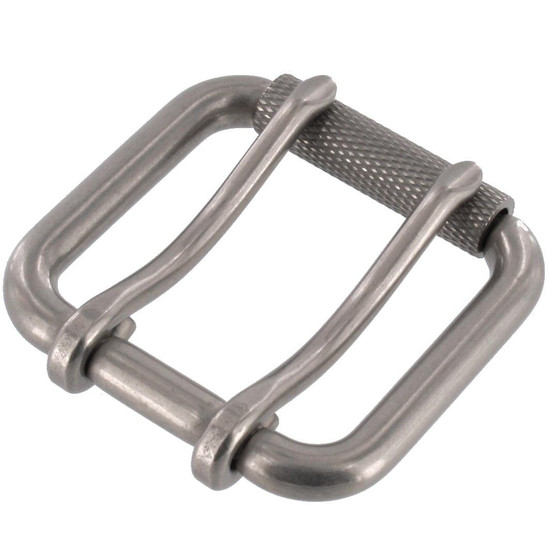 B7357 Nickel Matte, Double Prong Roller Buckle, w/ Textured Roller, Solid Brass-LL, Multiple Sizes