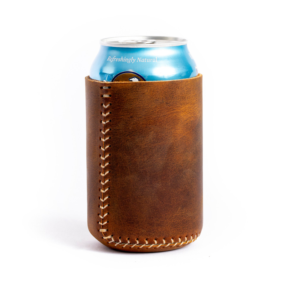 Stitch your very own leather Koosie. This Koosie features a unique 'Baseball Stitch' along with a 1.25" belt loop slot to attach to your belt if desired. Made with our Crazy Horse leather for a rustic look and gorgeous pull up characteristics.