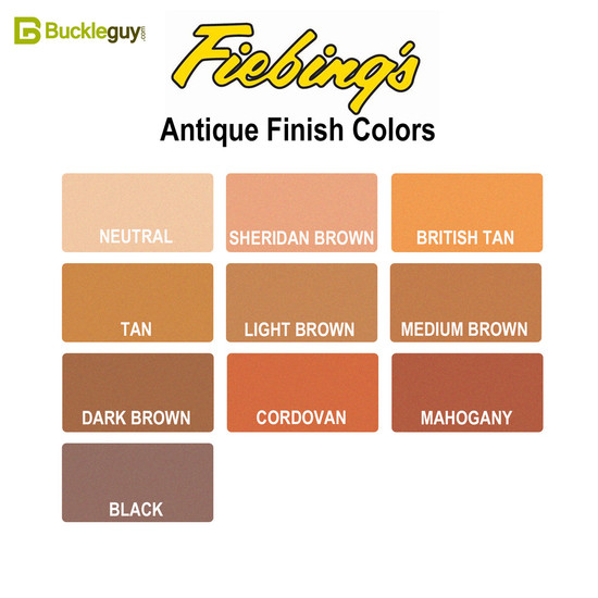 Imparts a soft, lustrous patina that emphasizes tooling, carving and embossing with a subtle, two-toned effect. Antique Finish is not entirely waterproof and should be protected with an additional wax or resin coating such as Resolene, or Leather Balm with Atom Wax. Antique Finish can be thinned with Fiebing's Tan Kote. Manufactured in Black, Dark Brown, Medium Brown, Light Brown, Sheridan Brown, Mahogany, Cordovan, British Tan, Tan and Neutral.