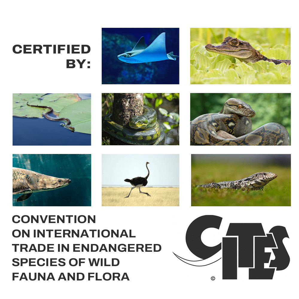 All of our Exotic Leathers are sourced and imported following the highest standards. We ensure to meet all the regulations overseen by CITES (The Convention on International Trade in Endangered Species of Wild Fauna and Flora). CITES is an international body supported in agreement of governments around the world for the responsible and sustainable trade of wild plants and animals to ensure the long-term survival of all species. Visit www.cites.org for more information on CITES standards & guidelines.