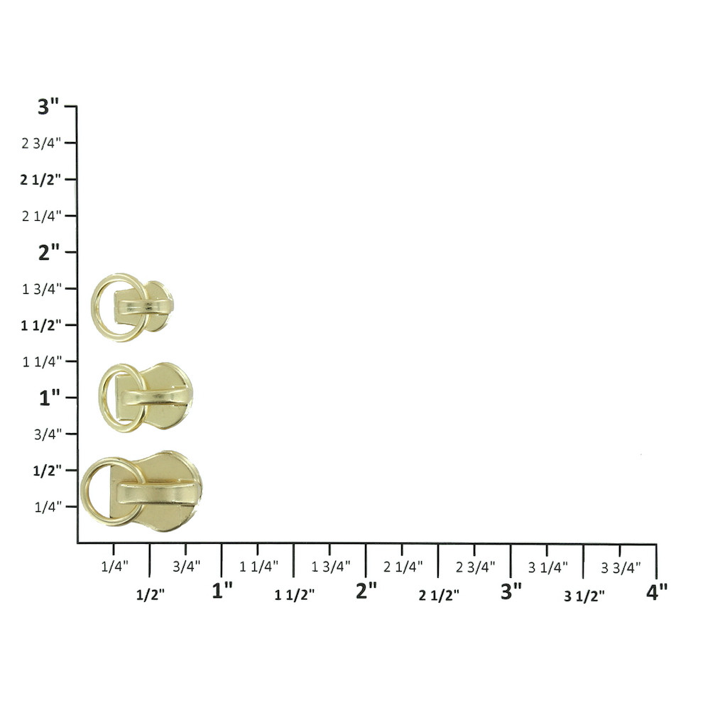 Riri Anello Zipper Pull, Brass Plate, Multiple Sizes
